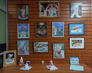 Семь талантливых рукодельниц – Костюкович Г.В, Козубенко Н.М., Долгова Н.А., Доброва Н.Н., Шидловская И.А., Николаева Г.А., Морева С.Е. – продемонстрировали 14 уникальных работ, выполненных в различных техниках: квиллинг, вязание крючком, стринг-арт, изделия из фоамирана, роспись по дереву, картины маслом, рисование шерстью и лоскутное шитье.
